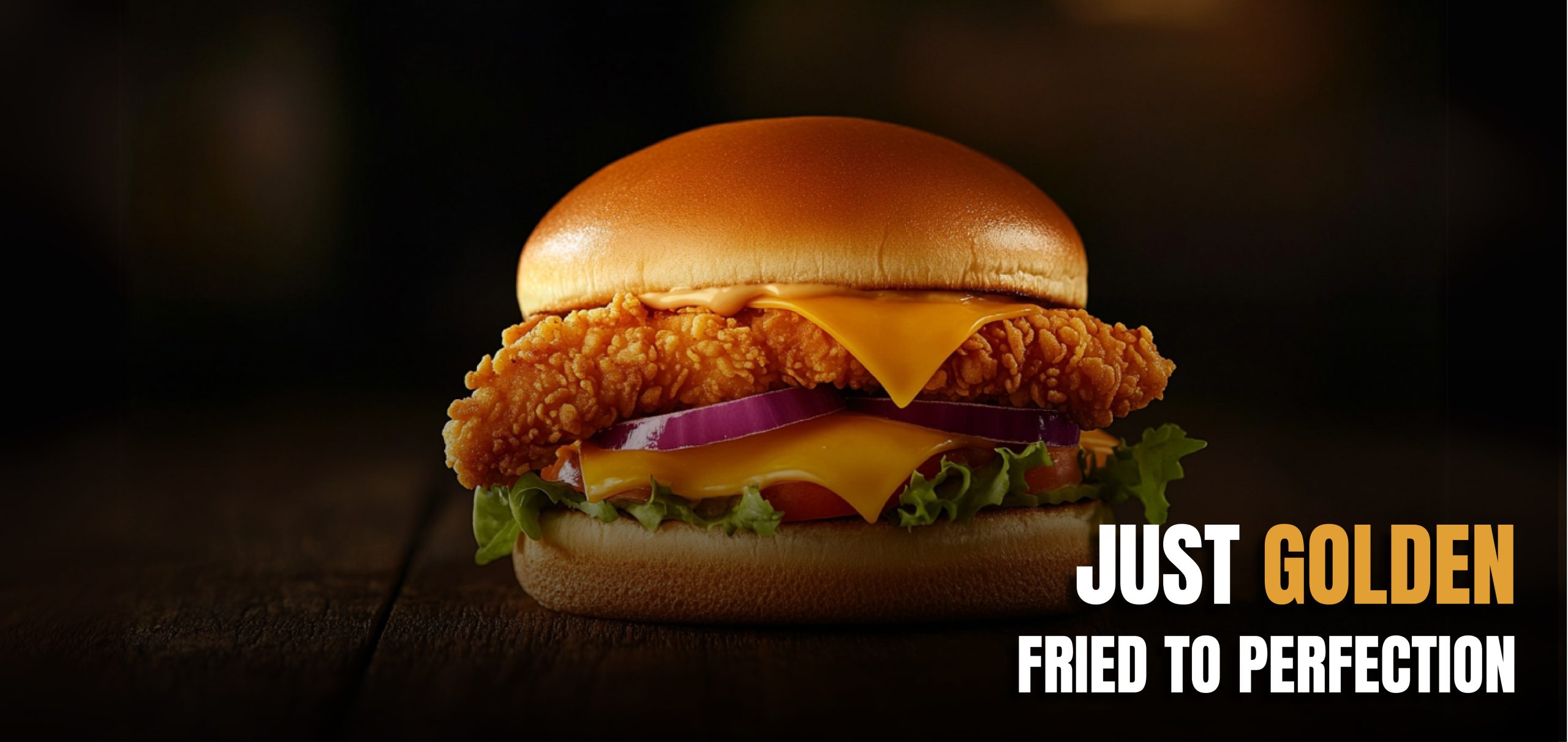 Our delicious wholesome burgers are Just Golden and Just Perfect.